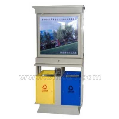 型号:A7301 规格:L950*W400*H1950mm 材质:广告式垃圾桶,垃圾桶采用优质电解钢板材质,表面经过酸洗、去锈、然后采用户外粉末静电喷涂处理。完全能适应室外各种恶劣环境,耐腐蚀,不易褪色,使用年限长。垃圾桶内胆采用镀锌板材质。