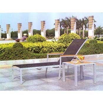 材质:铝合金支架,椅面特斯林网布。实木扶手装饰,茶几面为实木。