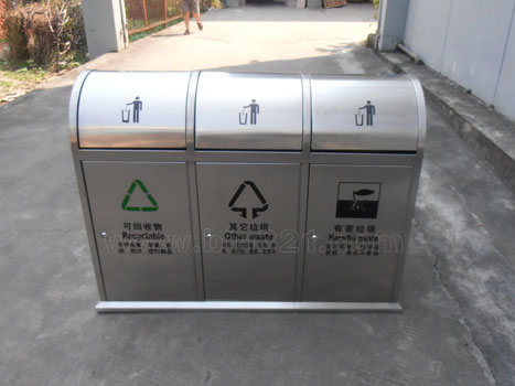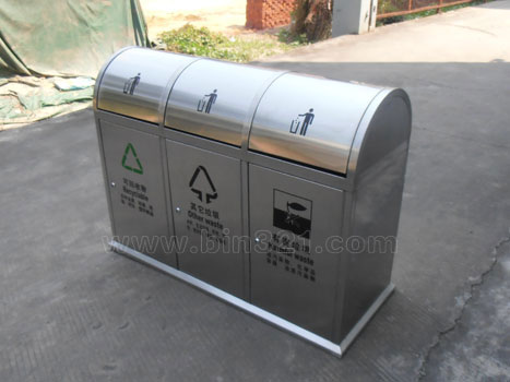 贵州省兴义市天生桥一级电厂—定制304#不锈钢3分类垃圾桶完工