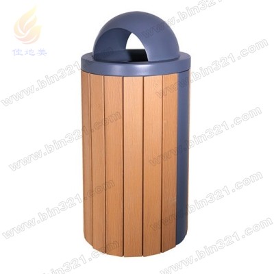 材质:钢架结构,表面经过酸洗、去锈、然后采用户外粉末静电喷涂处理。桶身为低碳环保生态木条装饰,垃圾桶内胆采用镀锌板材质。