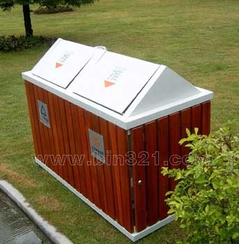 材质:钢木分类垃圾桶。垃圾桶采用钢架结构,表面经过酸洗、去锈、然后采用户外粉末静电喷涂处理。桶身为马来西亚进口山樟木条装饰,表面采用户外聚酯漆或户外水封漆上色涂装。垃圾桶内胆采用镀锌板材质。