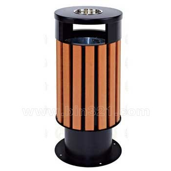 型号:A2017 规格:Φ400*H935mm 材质:垃圾箱采用钢架结构,表面经过酸洗、去锈、然后采用户外粉末静电喷涂处理。桶身为木条装饰,表面采用户外聚酯漆或户外水封漆上色涂装。垃圾桶内胆采用镀锌板材质。