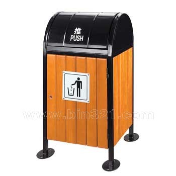 型号:A2125 规格:L460*W460*H900mm 材质:钢木分类垃圾桶;垃圾桶采用钢架结构,表面经过酸洗、去锈、然后采用户外粉末静电喷涂处理。桶身为马来西亚进口山樟木条装饰,表面采用户外聚酯漆或户外水封漆上色涂装。内胆采用镀锌板材质。