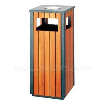 材质:垃圾桶采用钢架结构,表面经过酸洗、去锈、然后采用户外粉末静电喷涂处理。桶身为实木木条装饰,表面采用户外聚酯漆或户外水封漆上色涂装。垃圾桶内胆采用镀锌板材质。