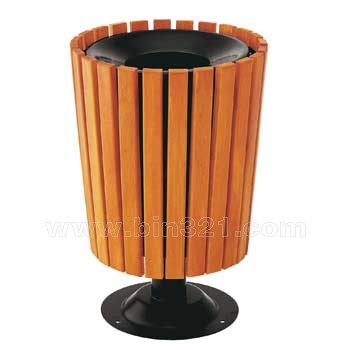 型号:A2048 规格:Φ550*H800mm 材质:垃圾箱采用钢架结构,表面经过酸洗、去锈、然后采用户外粉末静电喷涂处理。桶身为马来西亚进口山樟木条装饰,表面采用户外聚酯漆或户外水封漆上色涂装。垃圾桶内胆采用镀锌板材质。