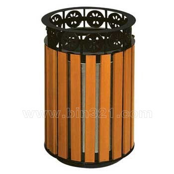 型号:A2059 规格:Φ480*H695mm 材质:垃圾箱采用钢架结构,表面经过酸洗、去锈、然后采用户外粉末静电喷涂处理。桶身为马来西亚进口山樟木条装饰,表面采用户外聚酯漆或户外水封漆上色涂装。垃圾桶内胆采用镀锌板材质。
