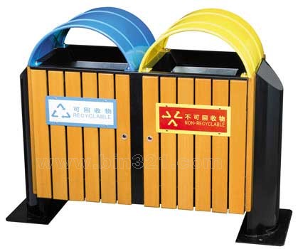 材质:钢木分类垃圾桶。垃圾桶采用钢架结构,表面经过酸洗、去锈、然后采用户外粉末静电喷涂处理。桶身为马来西亚进口山樟木条装饰,表面采用户外聚酯漆或户外水封漆上色涂装。垃圾桶内胆采用镀锌板材质。