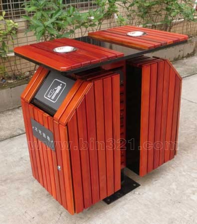 型号:A2272 规格:L750*W400*H850mm 材质:钢木垃圾桶。垃圾桶采用钢架结构,表面经过酸洗、去锈、然后采用户外粉末静电喷涂处理。桶身为马来西亚进口山樟木条装饰,表面采用户外聚酯漆或户外水封漆上色涂装。垃圾桶内胆采用镀锌板材质。