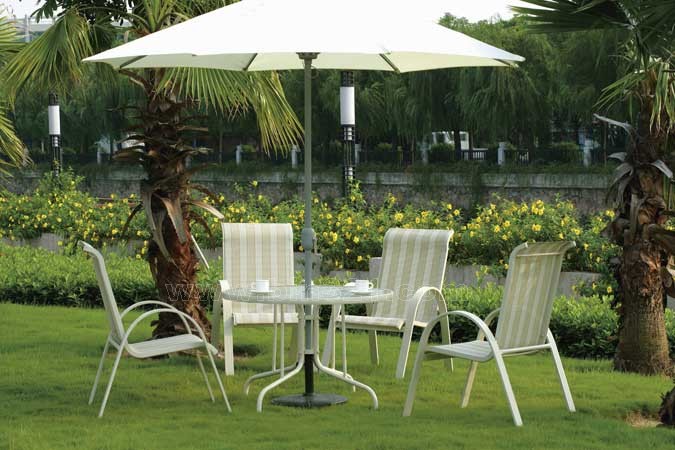 材质:铝合金支架,玻璃桌面,特斯林网布椅面。