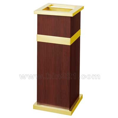 材质:黄色金属部份为优质不锈钢镀钛,桶身为红木饰面,镀锌版内胆。外观精美,高档。适用于酒店、大堂、等室内使用。