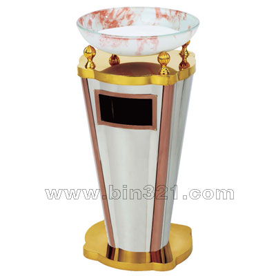 材质:酒店用垃圾桶,不锈钢镀钛金架,玻璃盆。