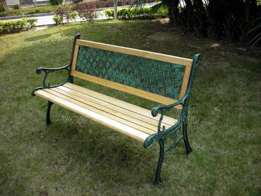 材质:钢木园林椅。铸铁椅脚,杉木椅面。