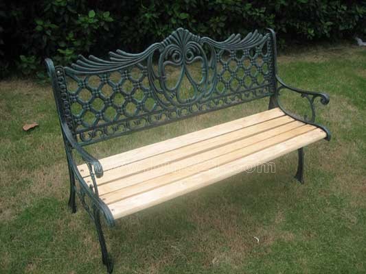 材质:钢木园林椅。铸铁椅脚,杉木椅面。