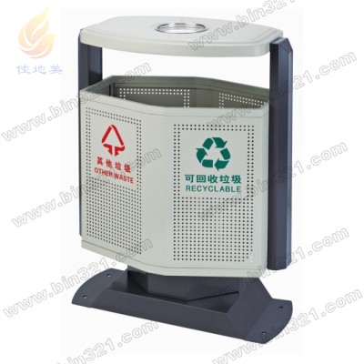 型号:A5005-C 规格:L705*W405*H975mm 材质:全钢结构,表面经过酸洗、去锈、然后采用户外粉末静电喷涂处理。桶盖为整体拉伸成型,垃圾桶内胆采用镀锌板材质。