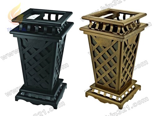 型号:A3010 规格:L450*W450*H800mm 材质:全钢材质,表面经过酸洗、去锈、然后采用户外粉末静电喷涂处理。完全能适应室外各种恶劣环境,耐腐蚀,不易褪色,使用年限长。垃圾桶内胆采用镀锌板材质。 颜色:哑光黑、古铜色