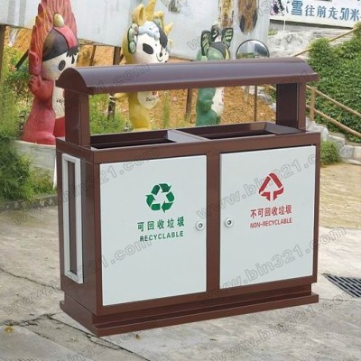 型号:A3567 规格:L830×W360×H850mm 材质:钢质分类垃圾桶。垃圾桶采用优质钢板材质,表面经过酸洗、去锈、然后采用户外粉末静电喷涂处理。完全能适应室外各种恶劣环境,耐腐蚀,不易褪色,使用年限长。垃圾桶内胆采用镀锌板材质。