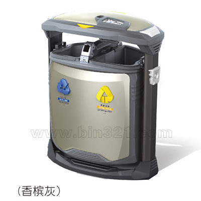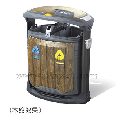 型号:A3019-C 规格:L789×W446×H1055mm 材质: 垃圾桶上盖和主箱体采用镀锌冷板材质,上盖采用整体拉伸成型,上盖底沿口采用内翻边成型工艺,使上盖更加坚固耐用。而且边缘光滑不刮手。灭烟板用不锈钢板一次拉伸成形,下方安装有封闭式铝合金抽拉烟灰盒。果壳箱整体采用户外塑粉静电喷涂。SPP喷印木纹、大理石效果。内桶采用高强度、阻燃、防UV、耐酸碱工业级树脂制作。 颜色:香槟灰、拉丝不锈钢、仿大理石效果、仿木纹效果。
