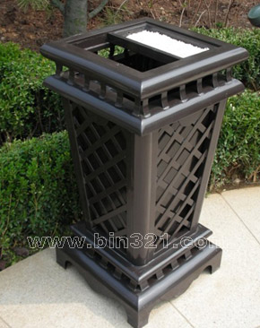 型号:A3003 规格:L450*W450*H925mm 材质:全钢材质,表面经过酸洗、去锈、然后采用户外粉末静电喷涂处理。完全能适应室外各种恶劣环境,耐腐蚀,不易褪色,使用年限长。垃圾桶内胆采用镀锌板材质。