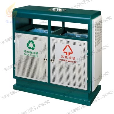 型号:A3382 规格:L880×W400×H930mm 材质:垃圾桶采用全钢材质,表面经过酸洗、去锈、然后采用户外粉末静电喷涂处理。完全能适应室外各种恶劣环境,耐腐蚀,不易褪色,使用年限长。垃圾桶内胆采用镀锌板材质。