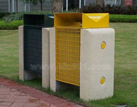 型号:A3377 规格:单桶L740*W500*H960mm 材质:垃圾桶采用优质电解钢板材质,表面经过酸洗、去锈、然后采用户外粉末静电喷涂处理。垃圾桶立柱采用水泥石米制作。垃圾桶内胆采用镀锌板材质。