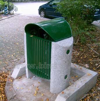 材质:垃圾桶采用钢架结构。表面经过酸洗、去锈、然后采用户外粉末静电喷涂处理。石米椅脚。垃圾桶内胆采用镀锌板材质。