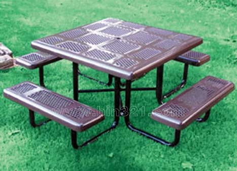 材质:休闲桌椅为全钢结构,椅脚采用优质钢管,椅面采用优质冷轧钢板数控冲孔,休闲桌椅表面经过酸洗、去锈、然后采用户外粉末静电喷涂处理。完全能适应室外各种恶劣环境,使用年限长。烤漆颜色可根据客户要求制作。