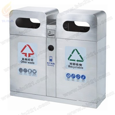 型号:A1073-B 规格:L905*W320*H905mm/2分类 材质:分类不锈钢垃圾桶,优质不锈钢板材质,表面为砂纹不锈钢处理,镀锌板内胆。(可按要求定制201#不锈钢、304#、316#等)。外观精美、高档、耐用、容量大。